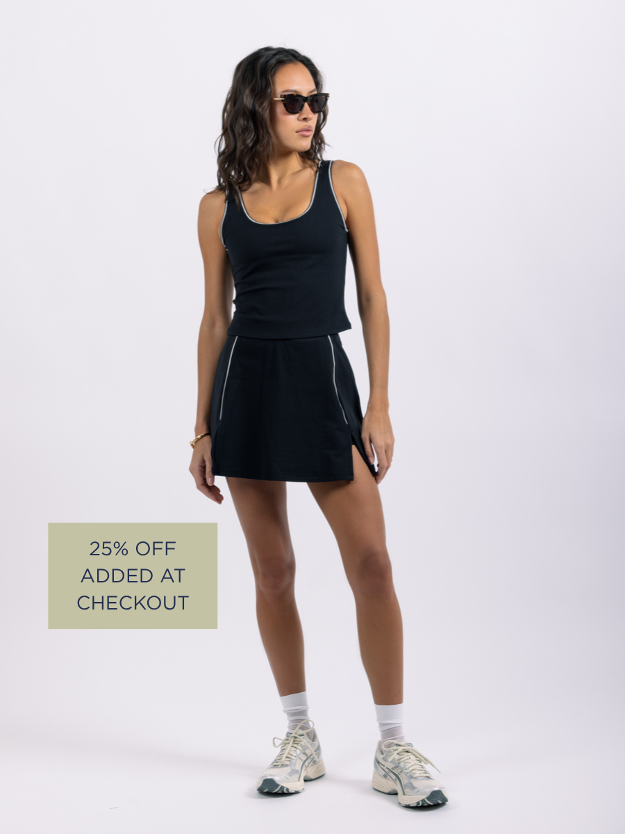 The tank you'll want in every color: The Madelyn tank is made from our signature brushed UPF50+ fabric with contrast stitching detail and a flattering scoop neck design. With a built-in shelf bra, full-length hem, and buttery soft compression feel, this tank will be a go-to in your closet.